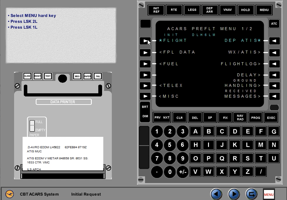 Schulungsmodul zur Nutzung des bei Lufthansa CityLine genutzten “Aircraft Communication and Reporting Systems”